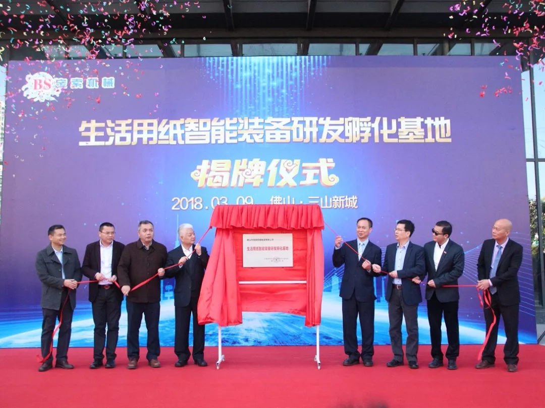 3月9日上午,“生活用紙智能裝備研發(fā)孵化基地”掛牌儀式在位于廣東省佛山市寶索機械制造有限公司總部舉行。中國造紙協(xié)會生活用紙專業(yè)委員會主任曹振雷博士和區(qū)、街道有關(guān)領(lǐng)導、職能部門、工商聯(lián)和項目代表、專家共同見證了這一激動人心時刻。