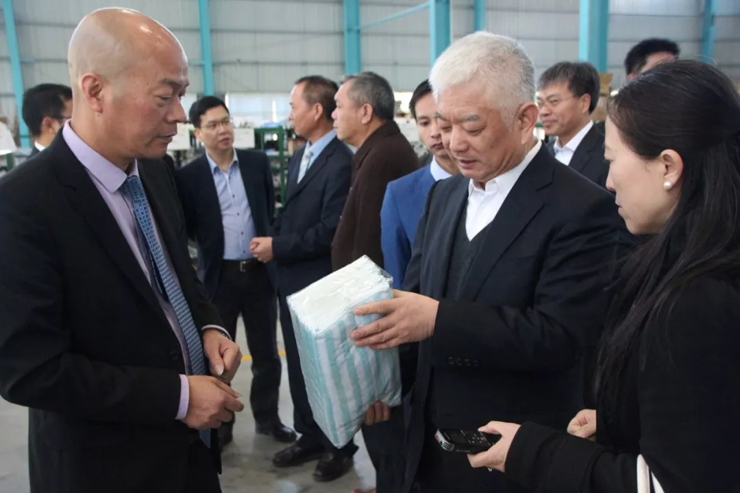 彭錦銅董事長及夫人和在會領(lǐng)導就生活用紙設備智能化創(chuàng)新問題,進行親切交談,共同分享揭牌儀式的喜悅!