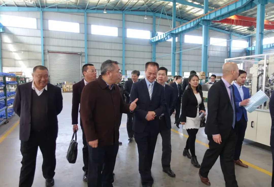 在會領(lǐng)導參觀寶索集團總部研發(fā)車間